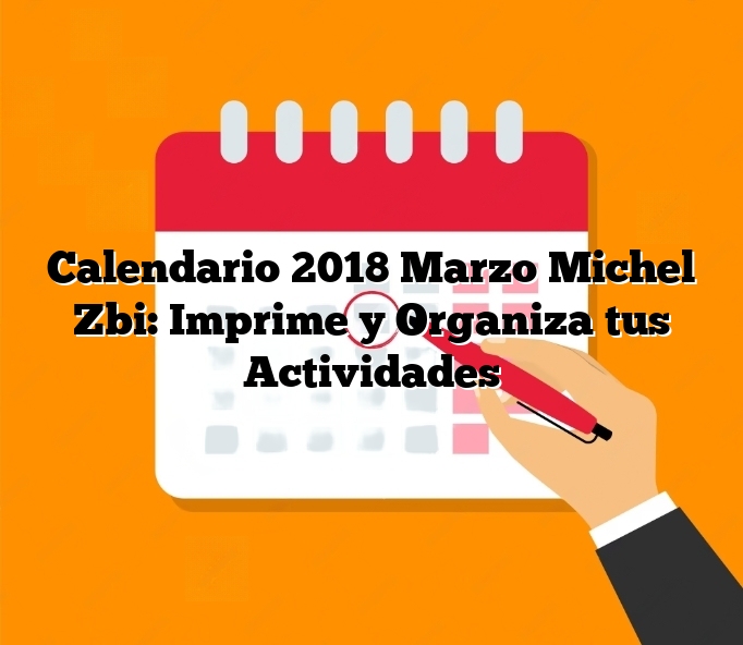 El calendario es una herramienta esencial para muchas personas, ya que les permite organizar sus actividades diarias, recordar fechas importantes y planificar eventos futuros. En la era digital, es común utilizar aplicaciones en el teléfono o en la computadora para acceder a un calendario virtual, pero muchas personas aún prefieren tener un calendario físico en sus hogares u oficinas. Si estás buscando un calendario para imprimir en marzo de 2018, el calendario de Michel Zbi es una excelente opción.El calendario de Michel Zbi es conocido por su diseño elegante y funcionalidad. Su estilo minimalista hace que sea fácil de leer y visualmente atractivo. Además, su diseño está disponible en varios colores, lo que permite personalizar el calendario de acuerdo a tus preferencias.Imprimir un calendario en marzo de 2018 es una excelente manera de planificar tus actividades para ese mes específico. Marzo es un mes lleno de celebraciones y eventos, como el Día Internacional de la Mujer y el Día de San Patricio. Tener un calendario impreso te ayudará a recordar estas fechas importantes y te permitirá planificar con anticipación cualquier evento o celebración que desees organizar.El calendario de Michel Zbi para marzo de 2018 tiene un diseño mensual, lo que significa que puedes ver todo el mes de marzo de un vistazo. Esto es especialmente útil para aquellos que necesitan planificar con anticipación y tener una visión general de sus actividades durante todo el mes.Para imprimir el calendario de marzo de 2018 de Michel Zbi, simplemente necesitas tener acceso a una impresora y papel de buena calidad. Puedes encontrar el archivo del calendario en línea, en el sitio web oficial de Michel Zbi. Una vez que hayas descargado el archivo, puedes abrirlo en tu programa de edición de imágenes favorito y ajustar el tamaño según tus necesidades. Luego, simplemente imprímelo y colócalo en un lugar visible, como la pared de tu oficina o tu habitación.Al utilizar el calendario de Michel Zbi, asegúrate de marcar las fechas importantes y resaltarlas con colores o utilizando pegatinas. Esto te ayudará a recordar y priorizar tus actividades. Además, puedes aprovechar las notas en blanco que suelen incluirse en el calendario para agregar recordatorios o hacer anotaciones adicionales.En resumen, el calendario de Michel Zbi para marzo de 2018 es una excelente opción si estás buscando un calendario para imprimir. Su diseño elegante y funcionalidad lo hacen ideal para aquellos que desean organizar sus actividades y recordar fechas importantes. No dudes en descargar el archivo del calendario de Michel Zbi y disfrutar de la comodidad de tener un calendario impreso en tu hogar u oficina. ¡No te arrepentirás!